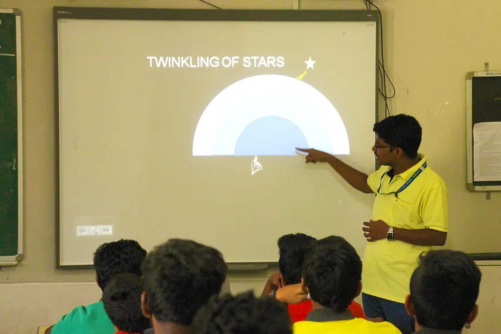 The classrooms are equipped with cutting-edge technology, such as smart boards with overhead projectors and internet access for better learning for students.