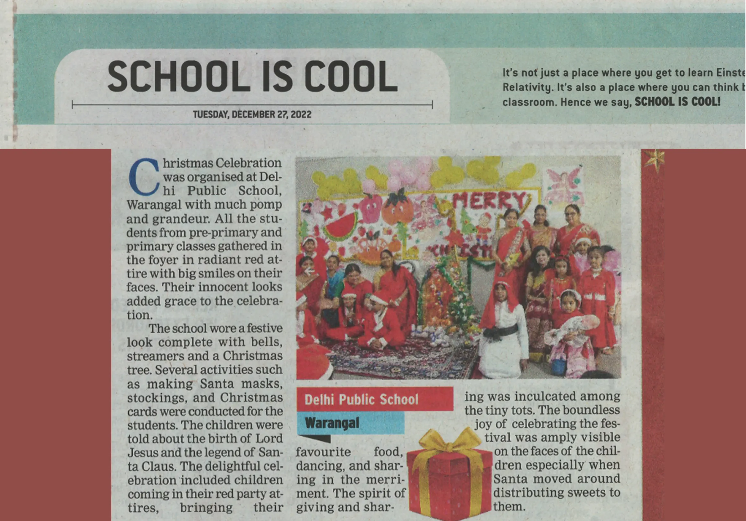 Christmas Celebrations News Article on Times of India 27-12-2022